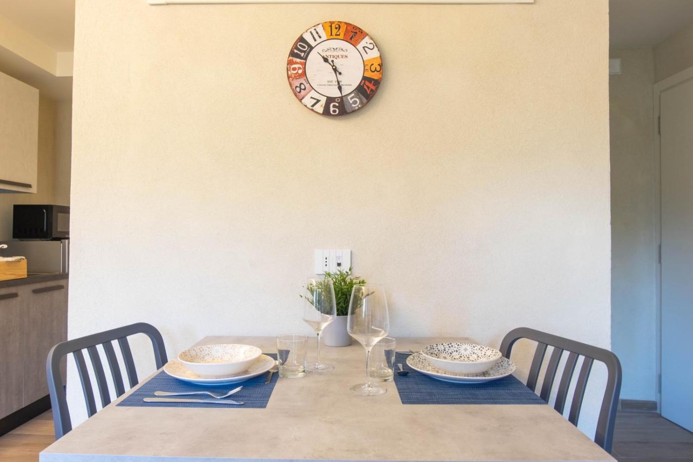 One-Bedroom Apartment. This apartment includes 1 bedroom, a kitchen and 1 bathroom with a shower and a hairdryer. The fully equipped kitchen has a stovetop, a refrigerator, kitchenware and an oven. Boasting a balcony with garden views, this apartment also offers a coffee machine and a flat-screen TV. The unit has 1 bed.