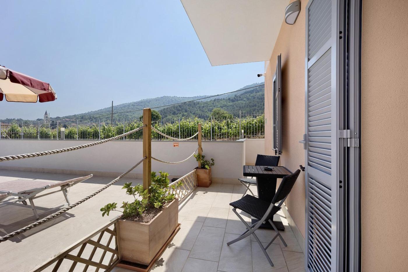 Two-Bedroom Deluxe Apartment with Garden View. Boasting a private entrance, this air-conditioned apartment includes a kitchen, 2 bedrooms and 1 bathroom with a shower and a hairdryer. The well-equipped kitchen has a dishwasher, kitchenware and an oven. Featuring a terrace with garden views, this apartment also offers an electric kettle and a TV. The unit has 3 beds.