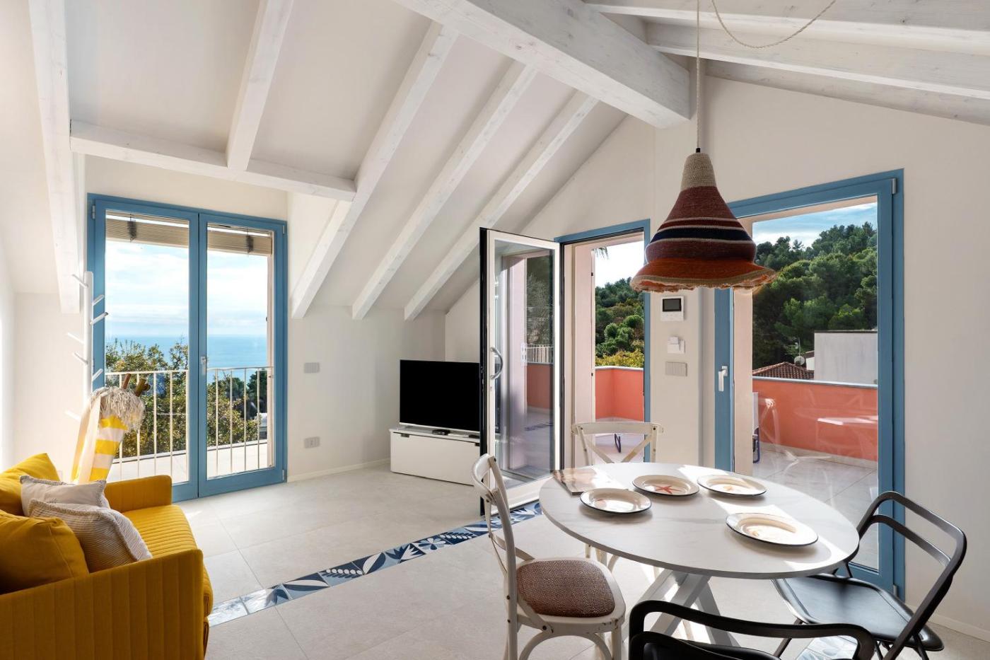 Each unit features a terrace offering sea views, a TV, a well-fitted kitchen and a private bathroom with shower, a hair dryer and free toiletries. At the holiday home, each unit includes bed linen and towels.