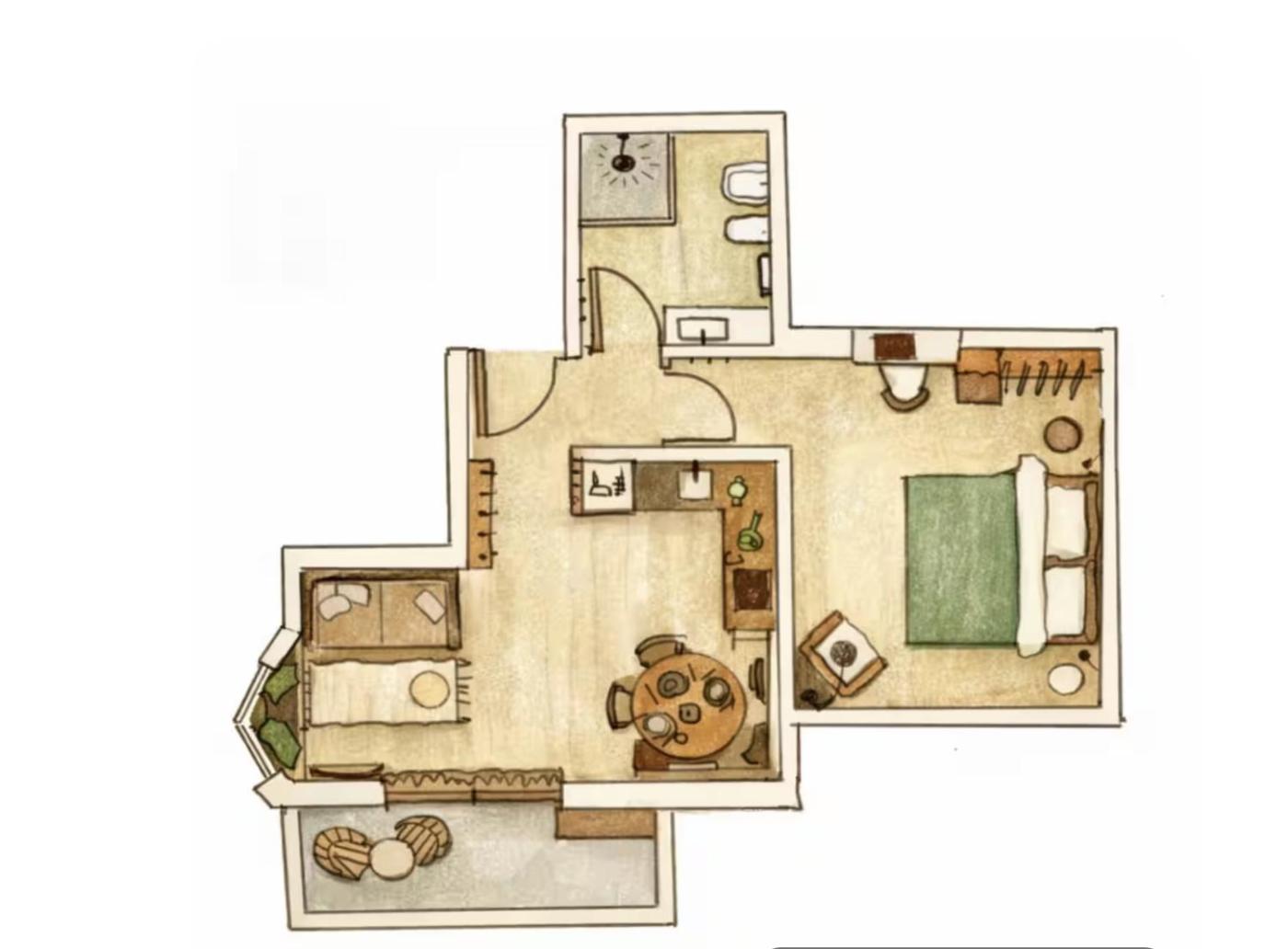 One-Bedroom Apartment. The air-conditioned apartment features 1 bedroom, 1 bathroom and a kitchen. The apartments kitchen is available for cooking and storing food. This apartment provides a flat-screen TV. The unit offers 3 beds. ;