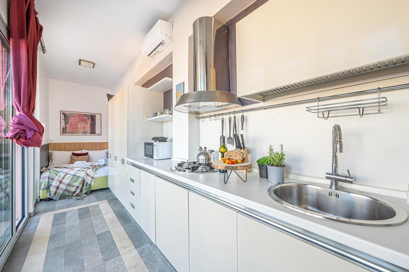 Apartment. The air-conditioned apartment has 1 bedroom and 1 bathroom with a bidet and a hairdryer. Meals can be prepared in the well-fitted kitchenette, which features a refrigerator, kitchenware, a microwave and a toaster. Boasting a terrace with city views, this apartment also features a coffee machine and a flat-screen TV with cable channels. The unit has 1 bed.