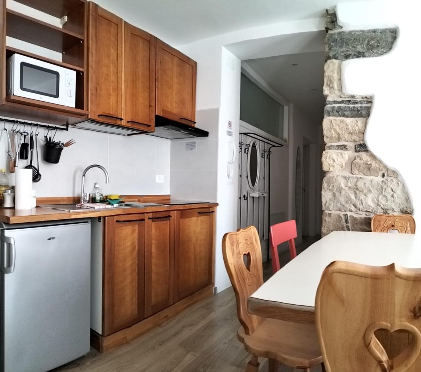 The apartment with a patio and mountain views features 2 bedrooms, a living room, a flat-screen TV, an equipped kitchen with a microwave and a fridge, and 1 bathroom with a bidet. Towels and bed linen are featured in the apartment. The property has an outdoor dining area.