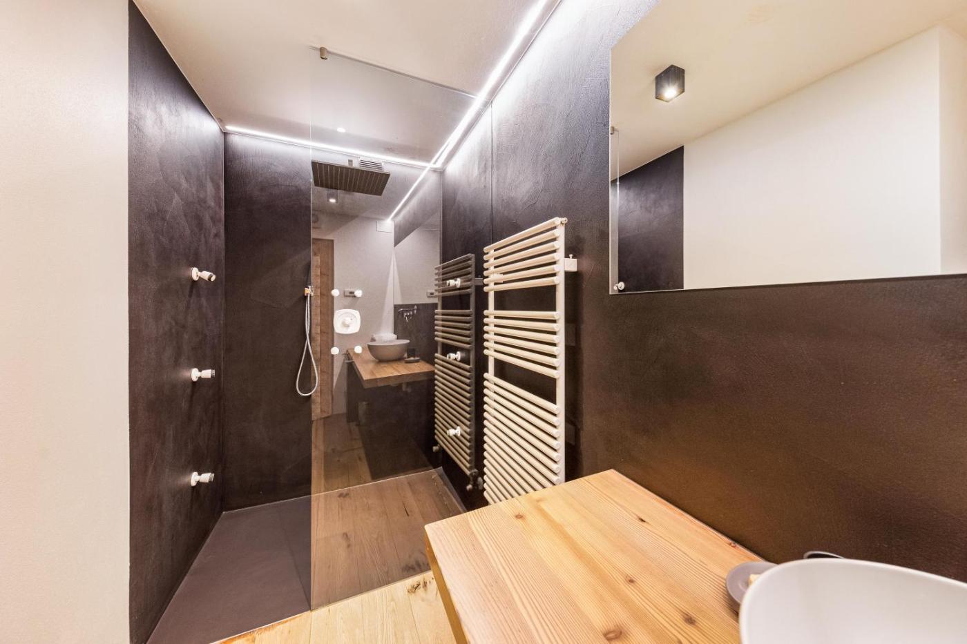 Two-Bedroom Deluxe Apartment with Balcony. The hot tub and fireplace are the special features of this apartment. This spacious apartment comes with 1 living room, 2 separate bedrooms and 2 bathrooms with a shower and free toiletries. The well-fitted kitchen has a dishwasher, kitchenware and an oven. Boasting a balcony with mountain views, this apartment also features a coffee machine and a TV with satellite channels. The unit has 3 beds.